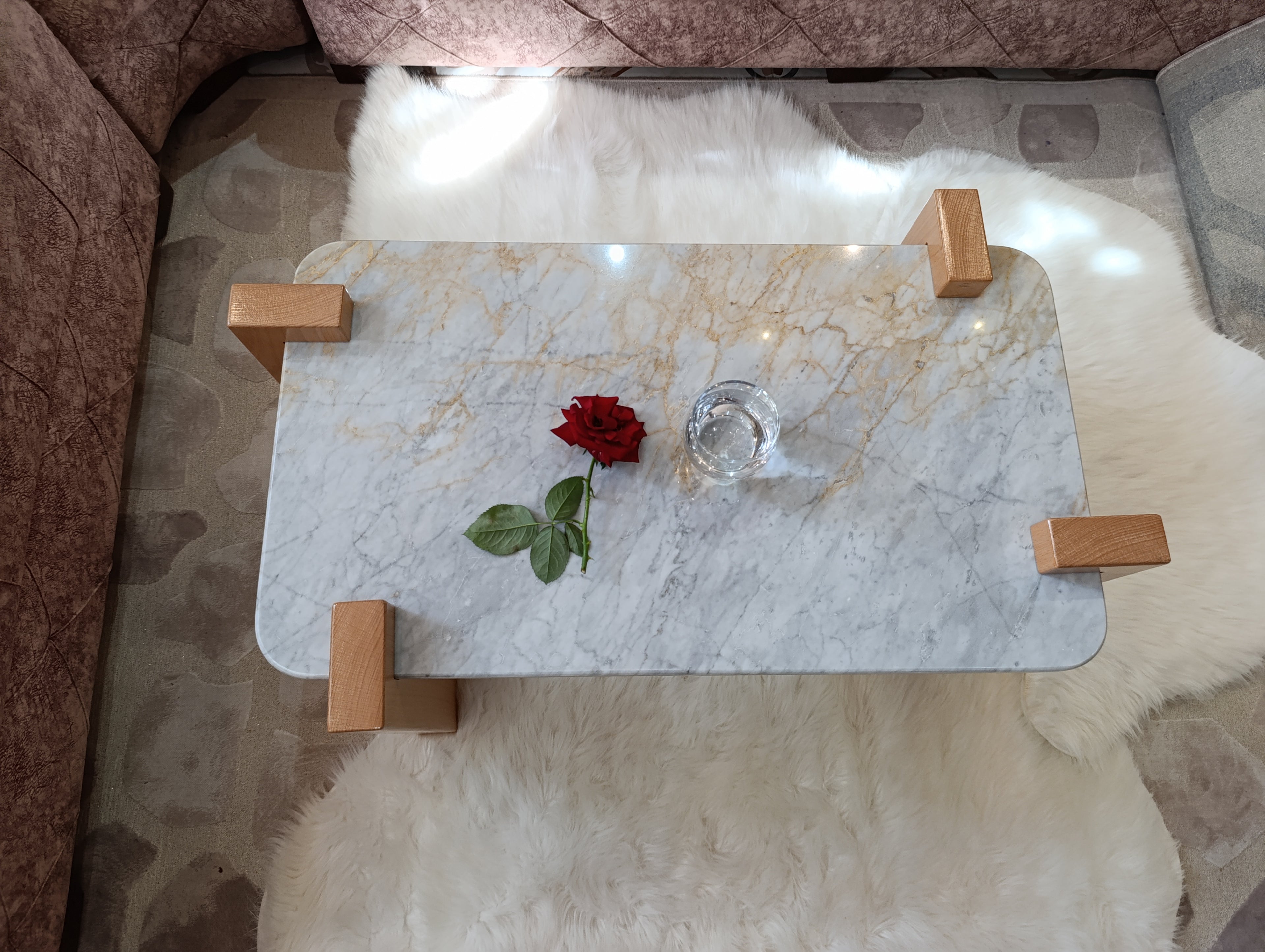 طاولة فخمة من الرخام الإيطالي وخشب الزان المتين