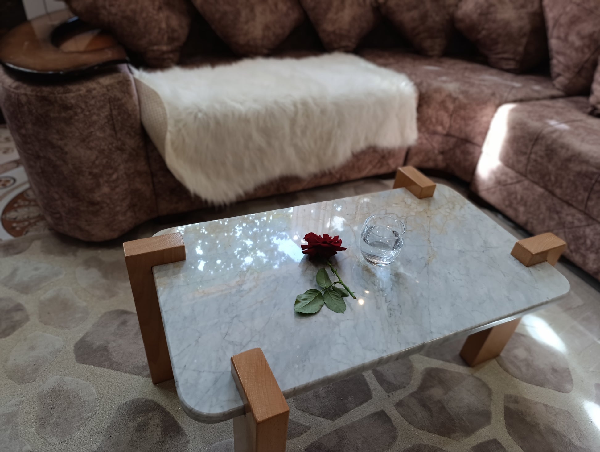 - في غرفة المعيشة: طاولة جانبية تزيد المكان فخامة